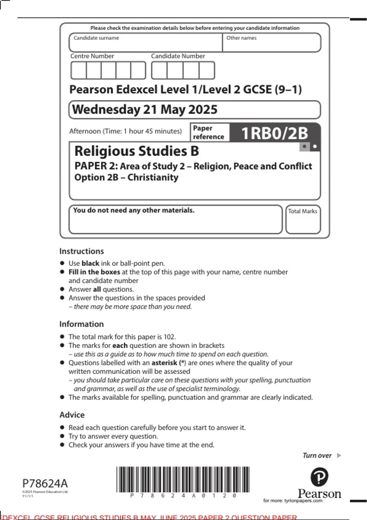 PAPER 2: Area of Study 2 – Religion, Peace and Conflict