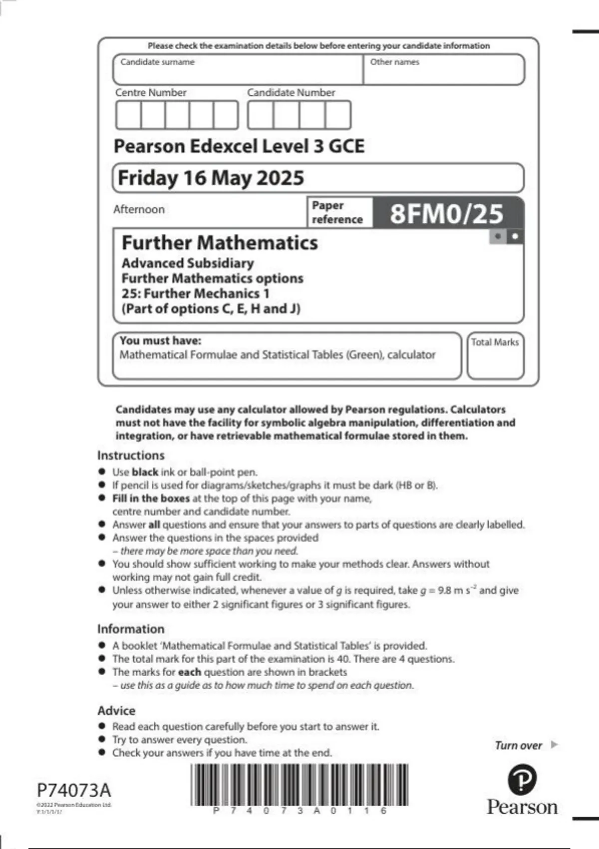 Pearson Edexcel as level Further Mathematics |question paper |2025|8FM0/25