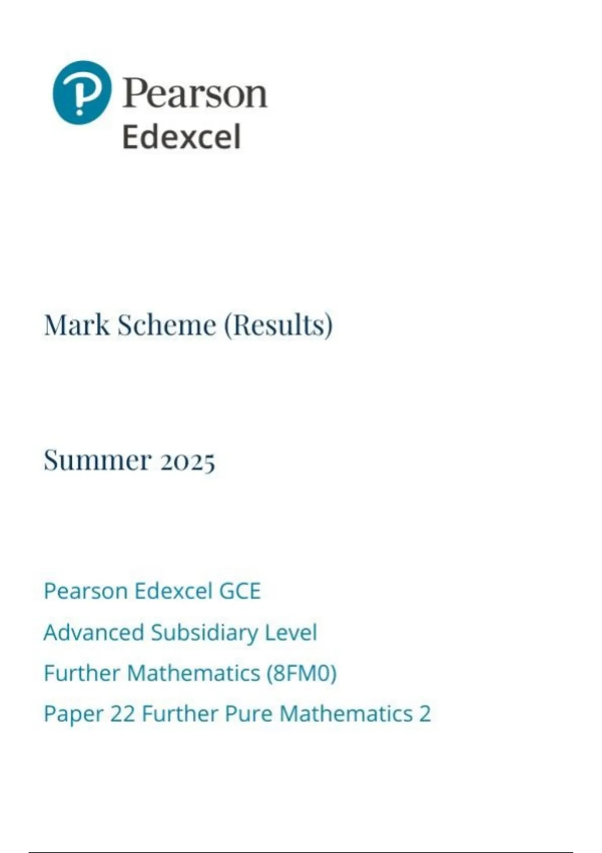 Pearson Edexcel as level Further Mathematics |final mark scheme | 2025|8fm0/22
