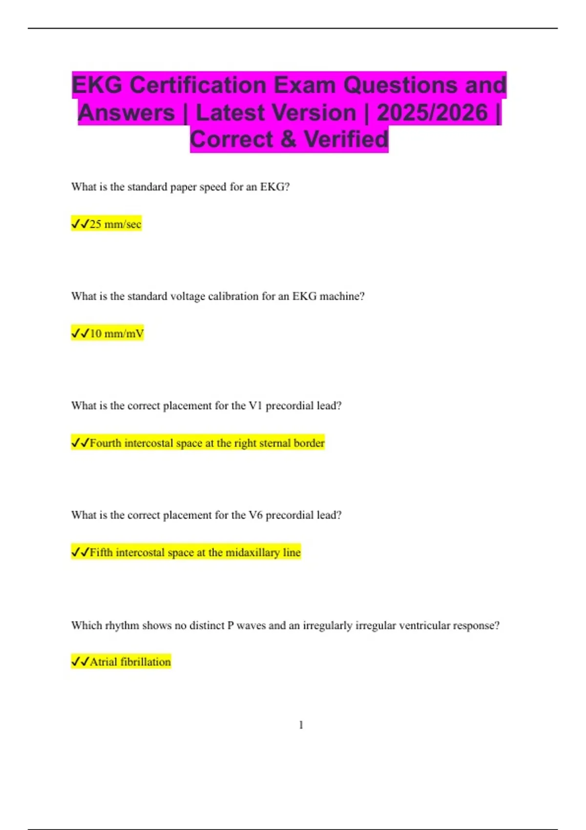 EKG Certification Exam Questions and Answers | Latest Version | 2025/2026 | Correct & Verified