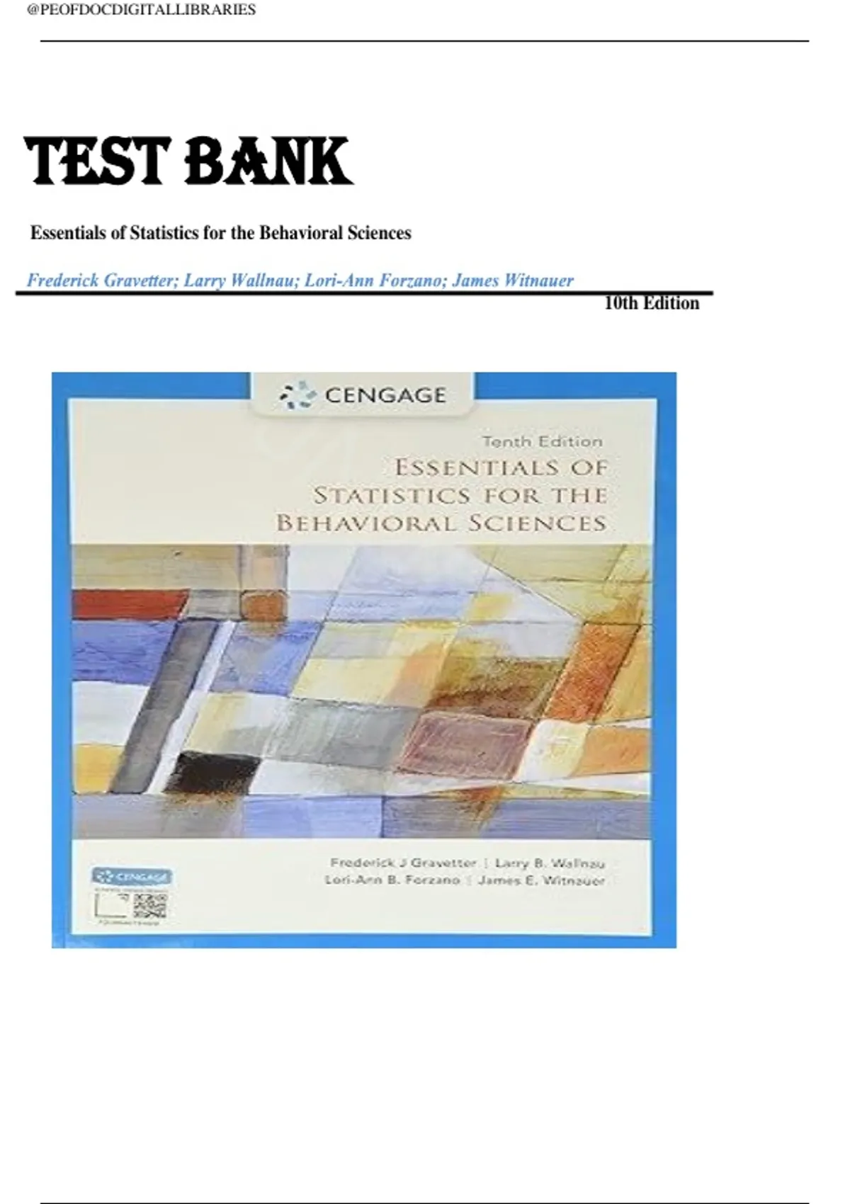 Essentials Of Statistics for The Behavioral Sciences 10th Edition by Frederick J Gravetter,