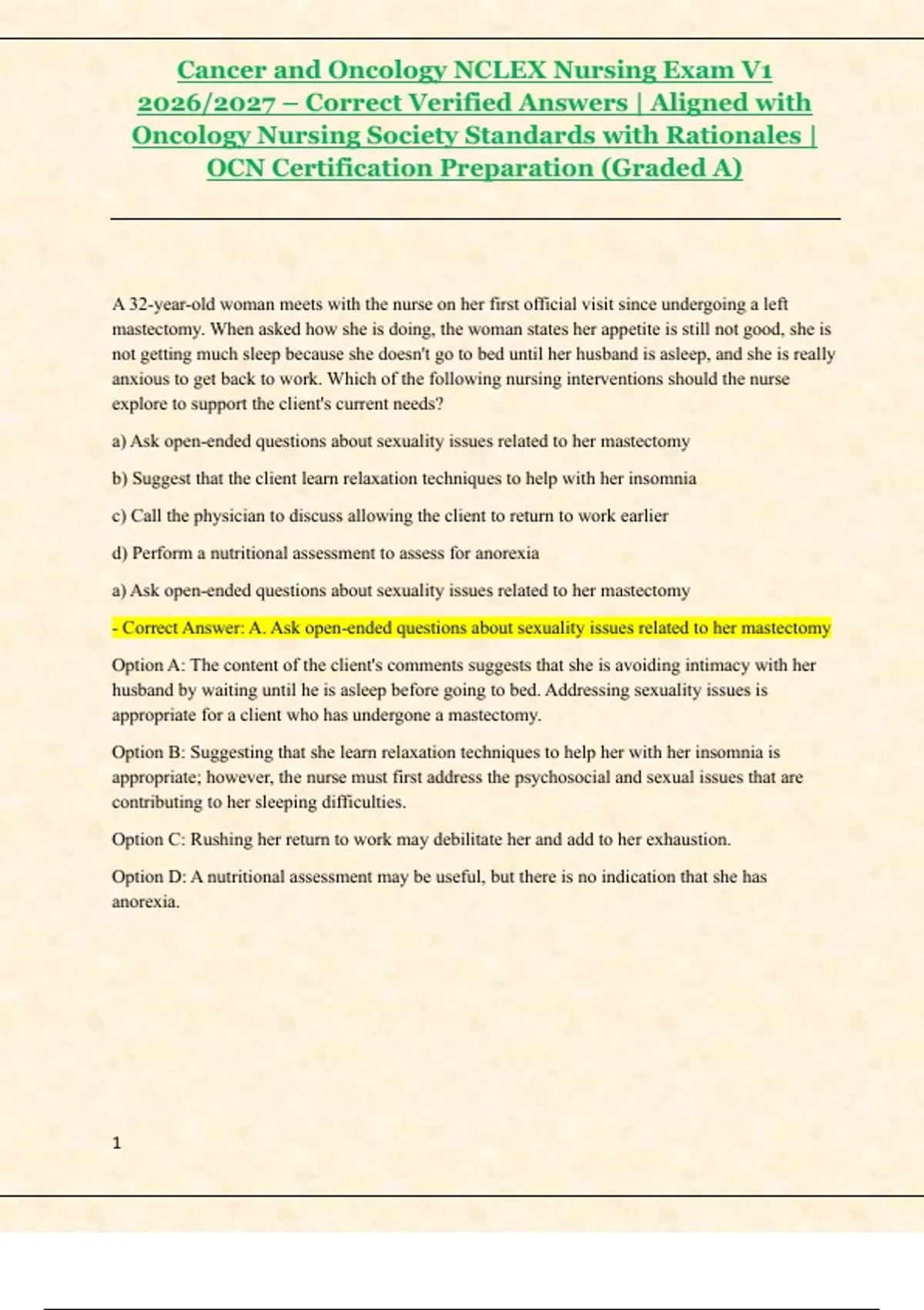 , Cancer and Oncology NCLEX Nursing Exam V1