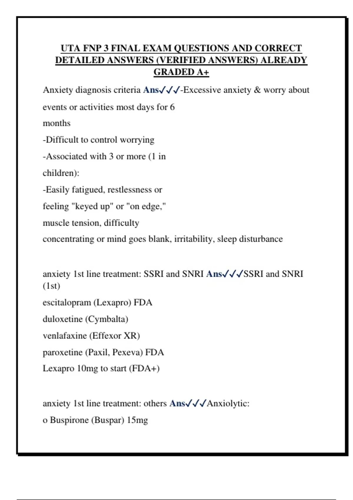 anxiety 1st line treatment: SSRI and SNRI Ans✓✓✓SSRI and SNRI