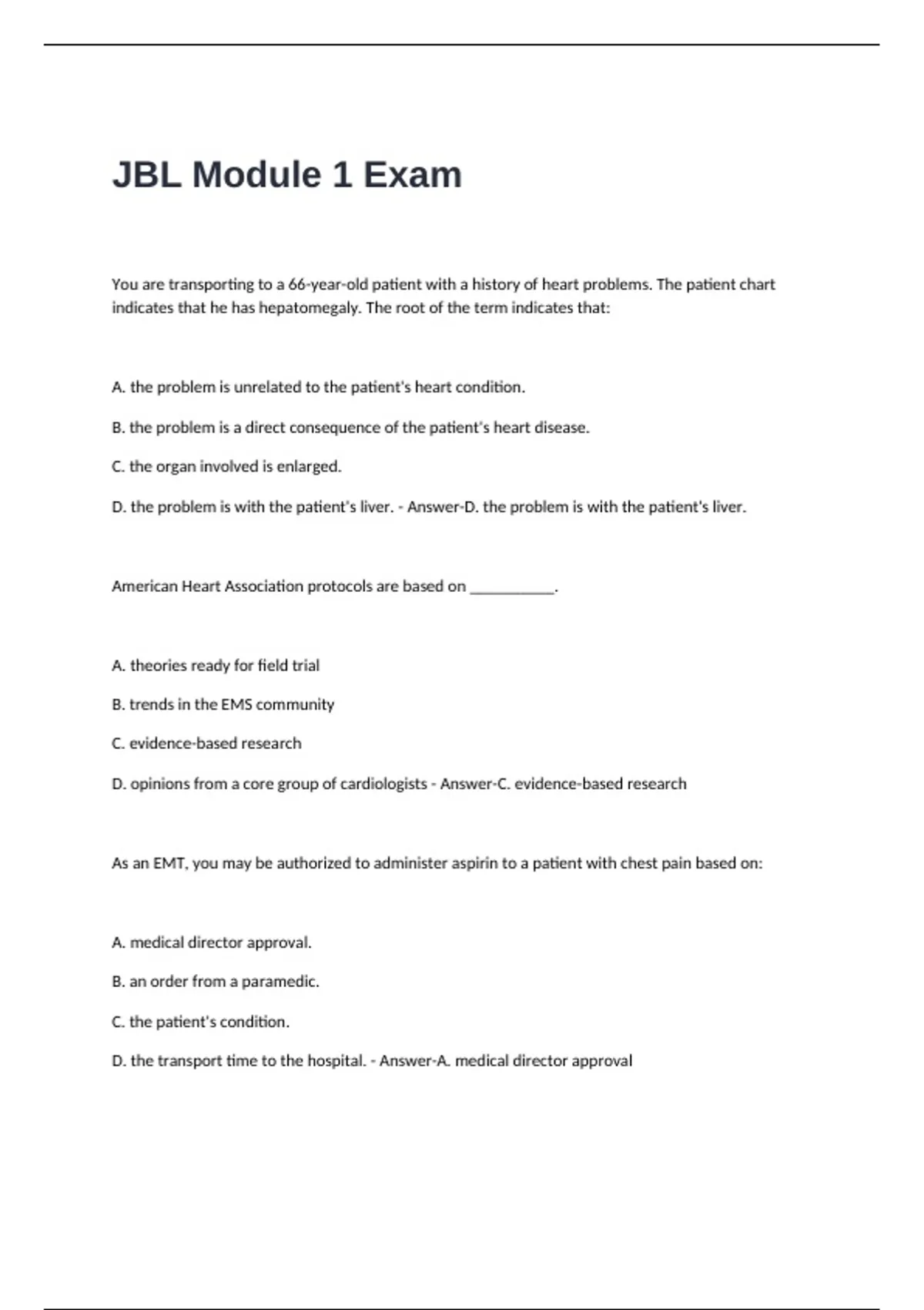 D. the transport time to the hospital. - Answer-A. medical director approval