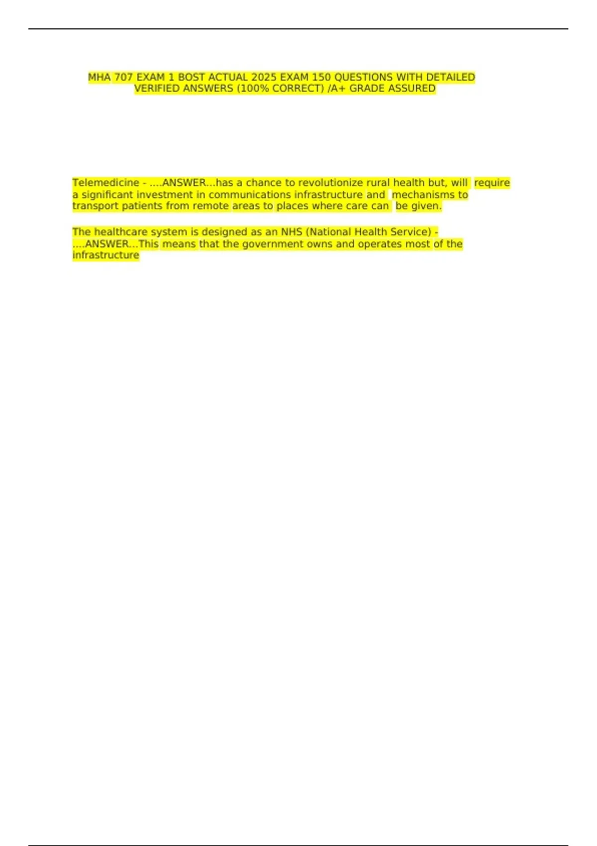 MHA 707 EXAM 1 BOST ACTUAL 2025 EXAM 150 QUESTIONS WITH DETAILED