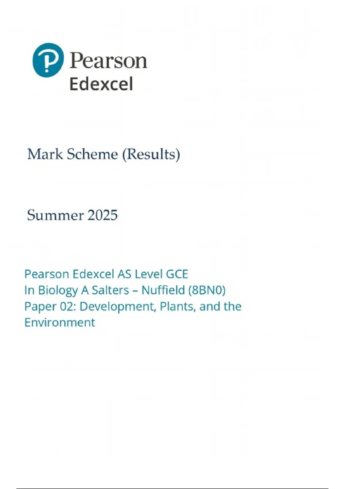 the Edexcel GCE AS Level Biology Paper 2 Mark Scheme with detailed answers, past papers, and revision support. Perfect for students preparing for AS Biology exams and boosting exam performance.