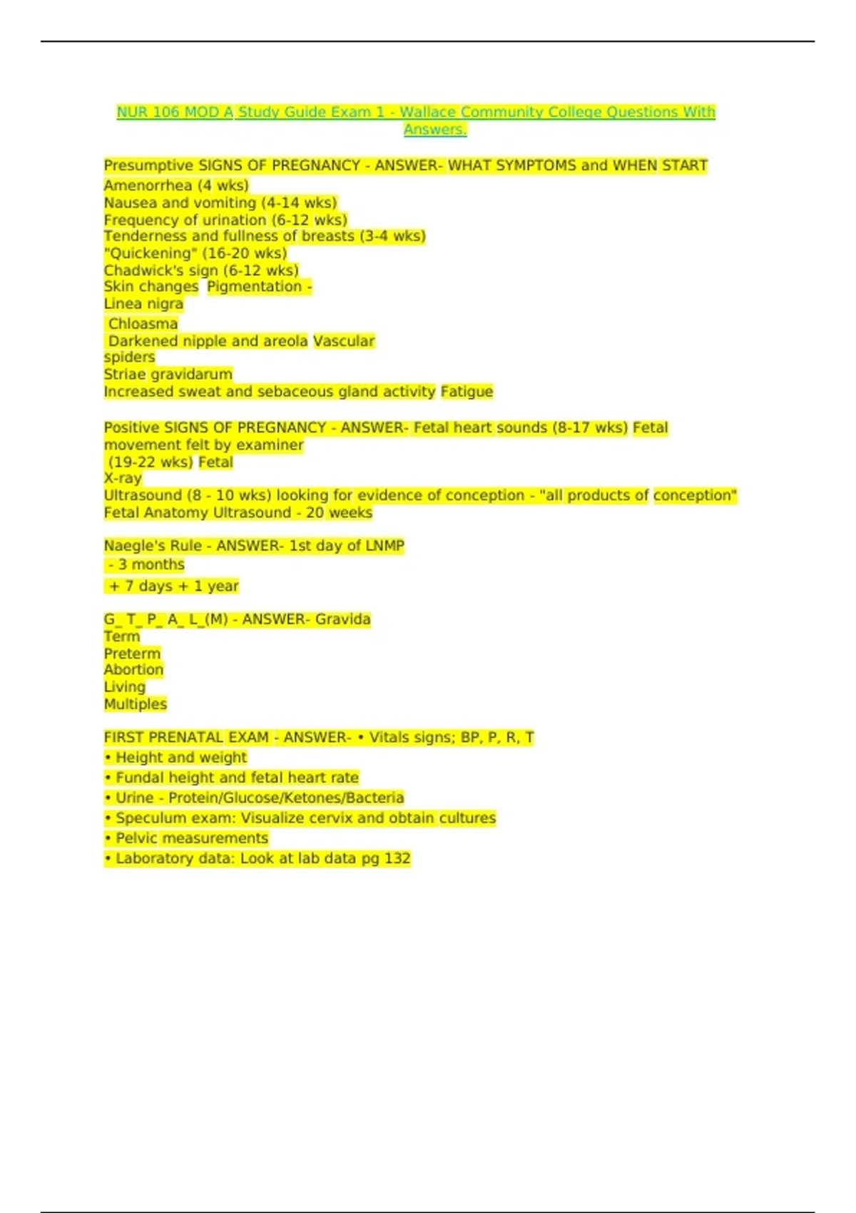 NUR 106 MOD A Study Guide Exam 1 - Wallace Community College Questions With Answers. (2).docx