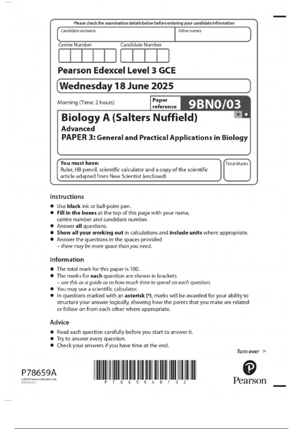 Access the Edexcel GCE A Level Biology A Paper 3 2025 with complete mark scheme, detailed answers, past papers, and revision support. Perfect for students preparing for the A Level Biology exams.