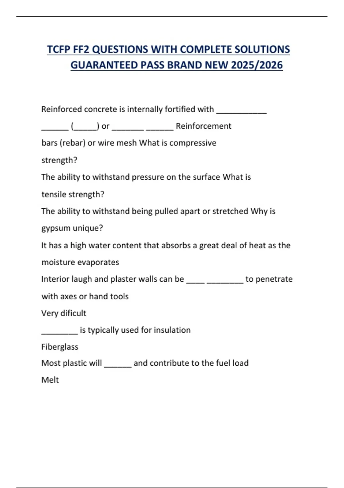 TCFP FF2 QUESTIONS WITH COMPLETE SOLUTIONS