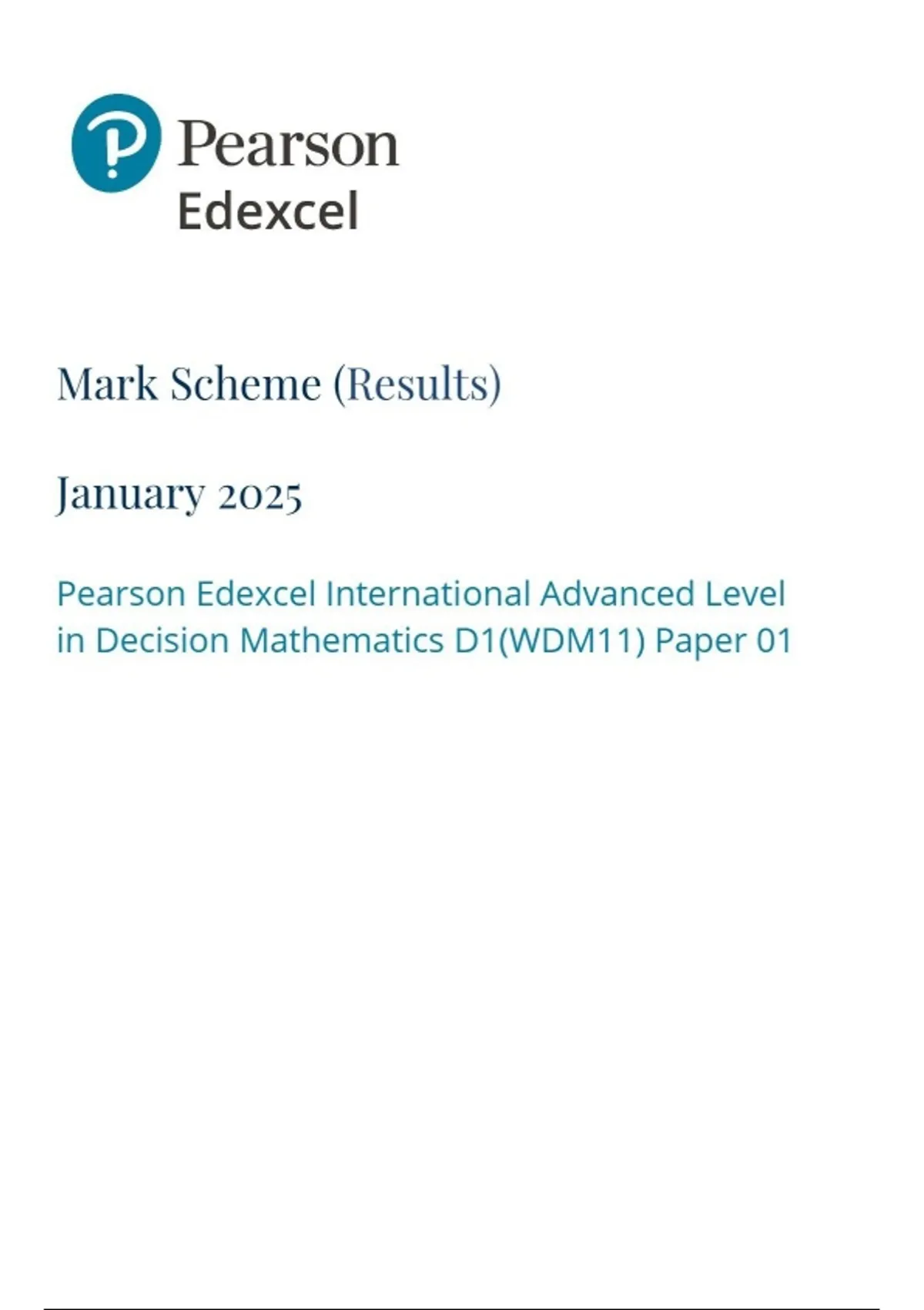 Pearson Edexcel International Advanced Level in Decision Mathematics D1 (WDM11) Paper 01 mark scheme January 2025