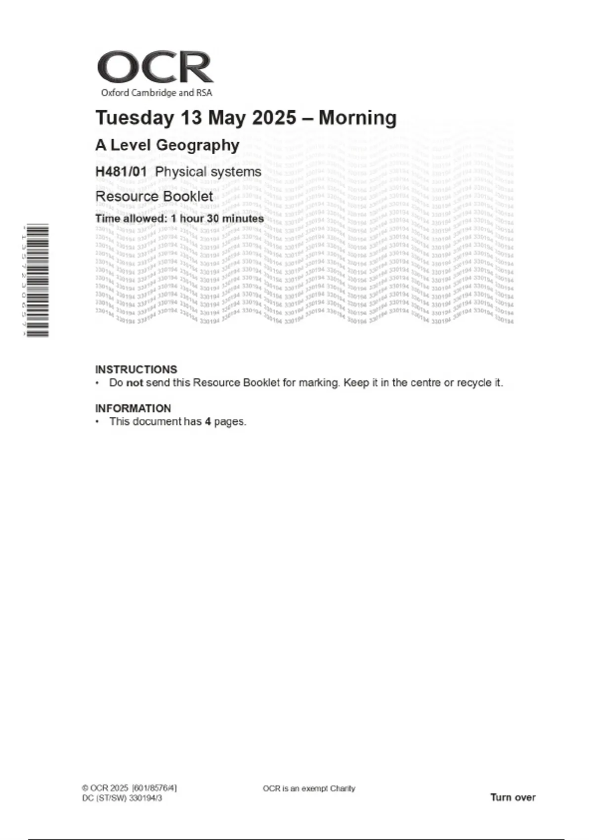 2025 OCR A Level Geography H481/01 Physical systems Combined Question Paper & Final Marking Scheme
