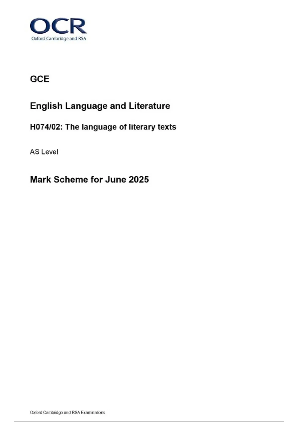 As level English Language and Literature EMC (The language of literary texts) Paper 2 2025 H074/02 Mark Scheme
