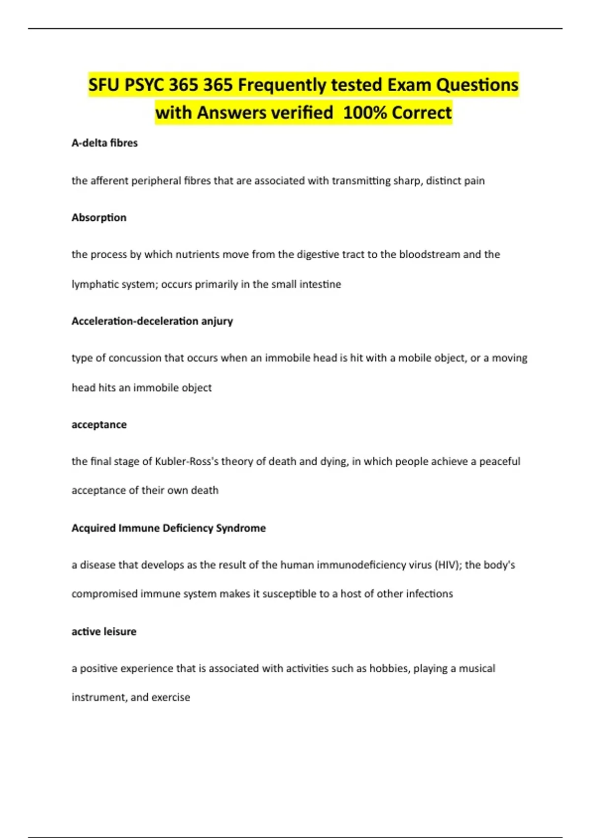 SFU PSYC 365 365 Frequently tested Exam Questions