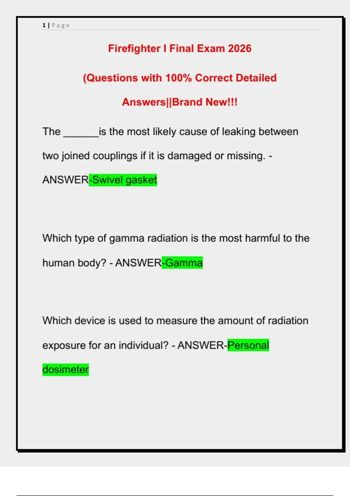 Firefighter I Final Exam 2026 (Questions with 100% Correct Detailed Answers||Brand New!!!