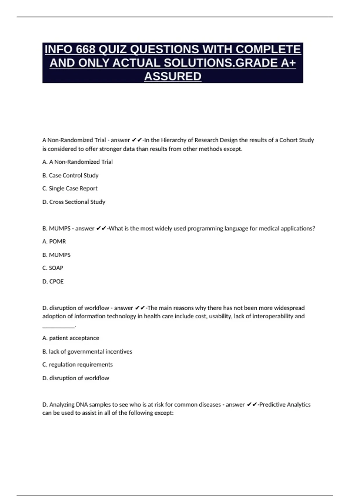 INFO 668 QUIZ QUESTIONS WITH COMPLETE AND ONLY ACTUAL SOLUTIONS.GRADE A+