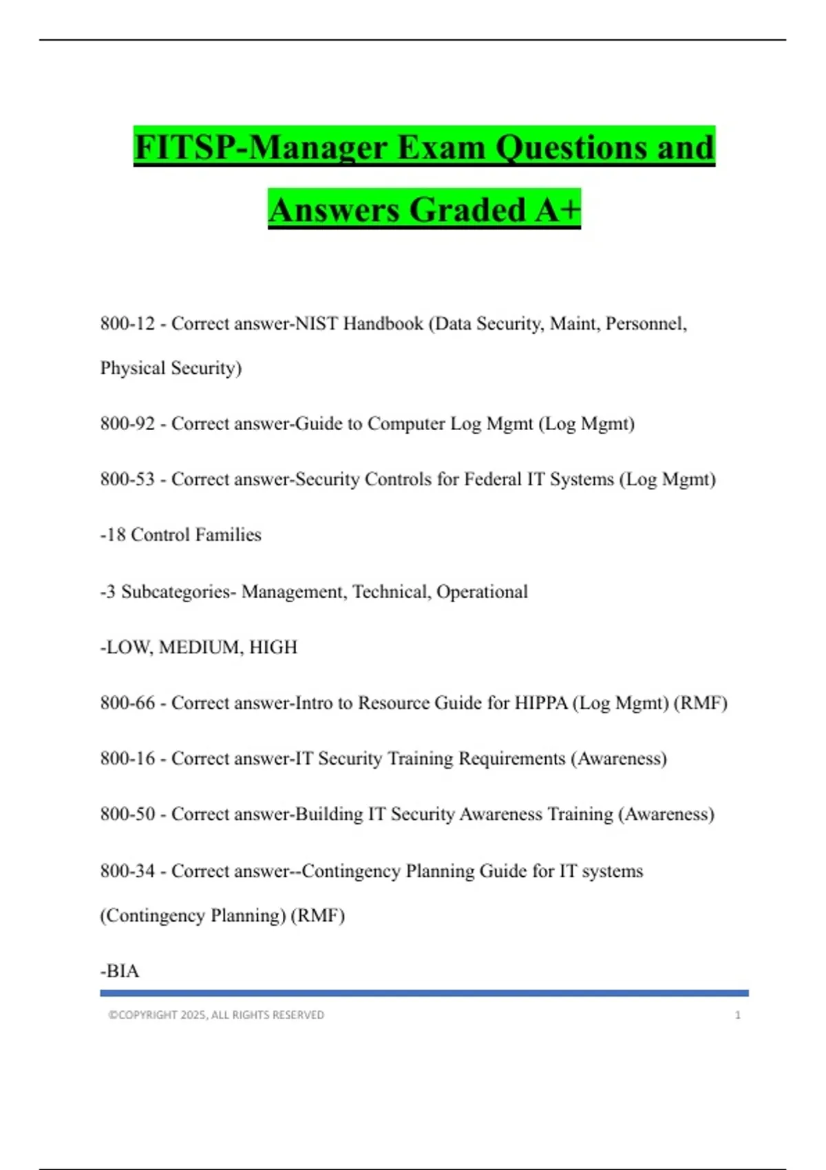 FITSP-Manager Exam Questions and Answers Graded A+