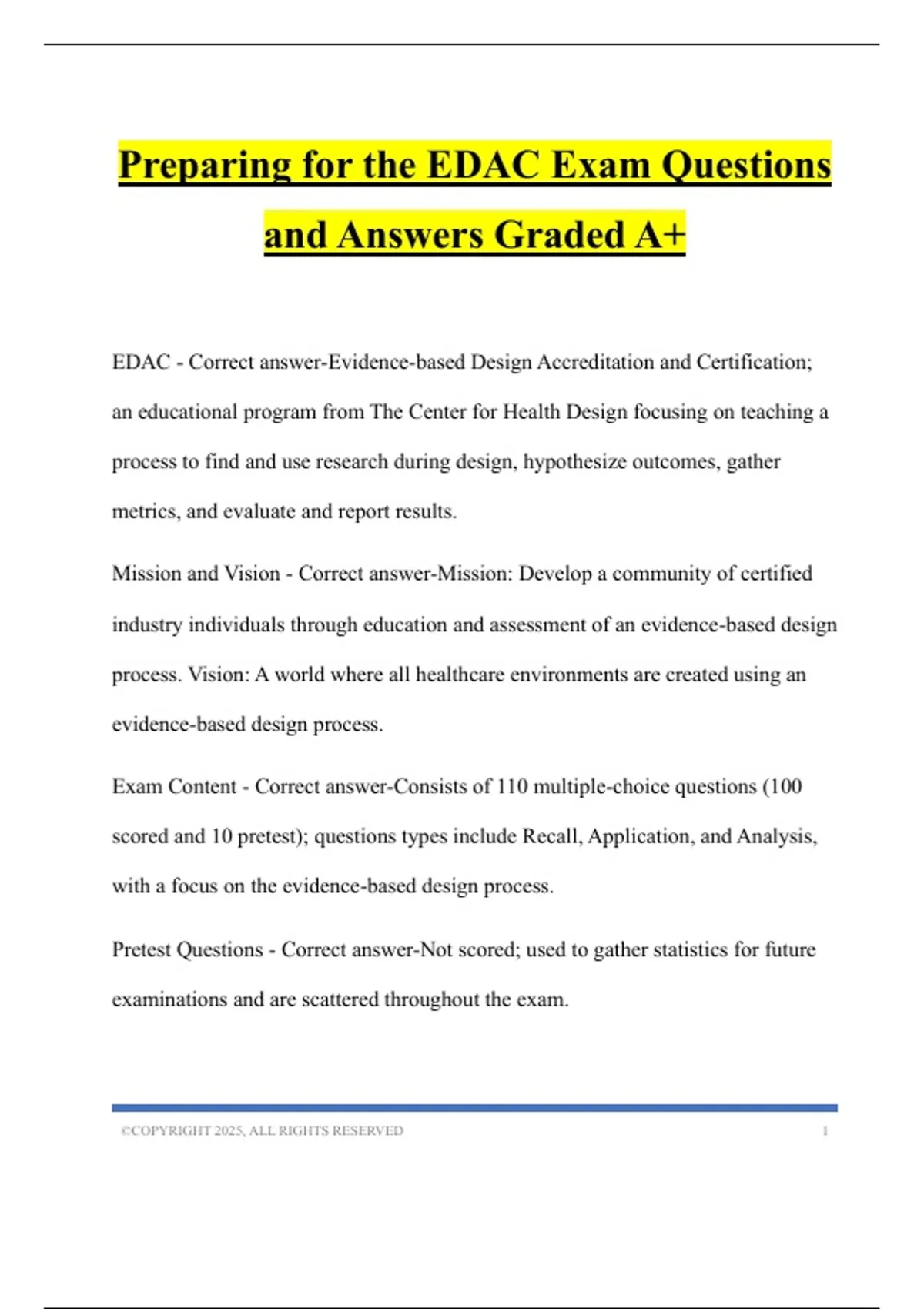 Preparing for the EDAC Exam Questions and Answers Graded A+