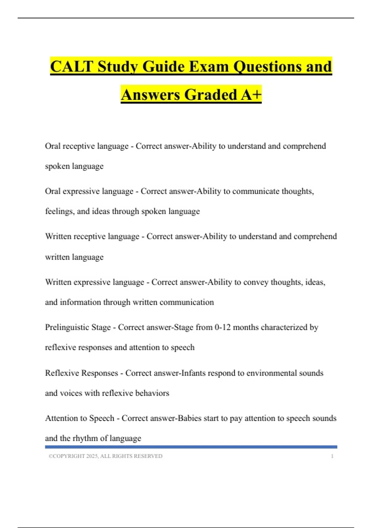 CALT Study Guide Exam Questions and