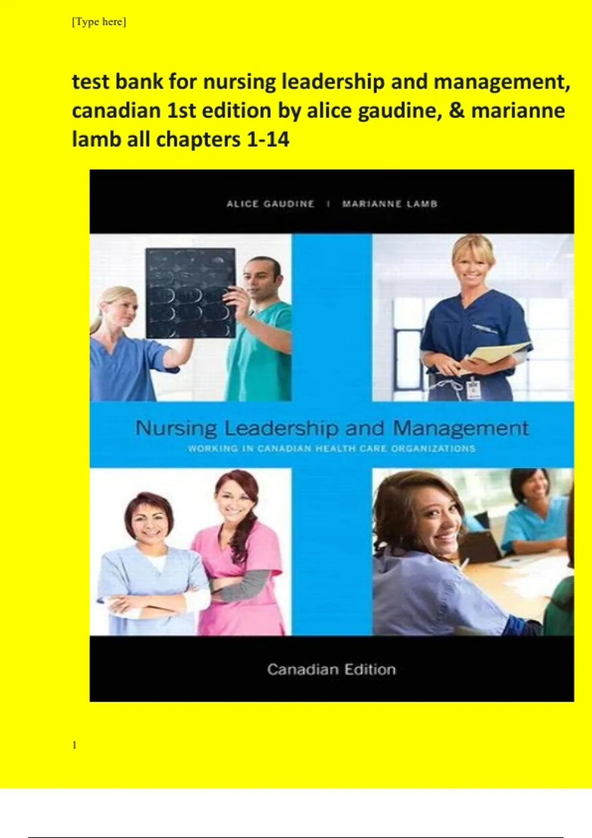 Test Bank For Nursing Leadership and Management, Canadian 1st Edition By Alice Gaudine, & Marianne Lamb All Chapters 1-14