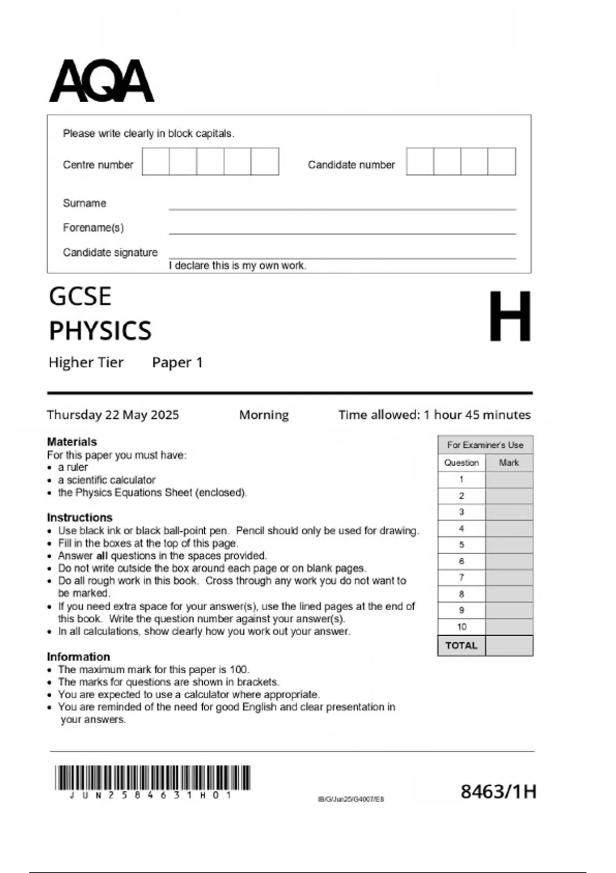 GCSE AQA Physics Higher Tier Paper 1 2025 | Full Breakdown & Exam Guide