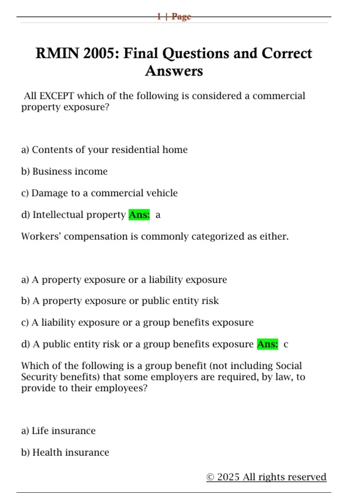 RMIN 2005: Final Questions and Correct AnswersRMIN 2005: Final Questions and Correct Answers