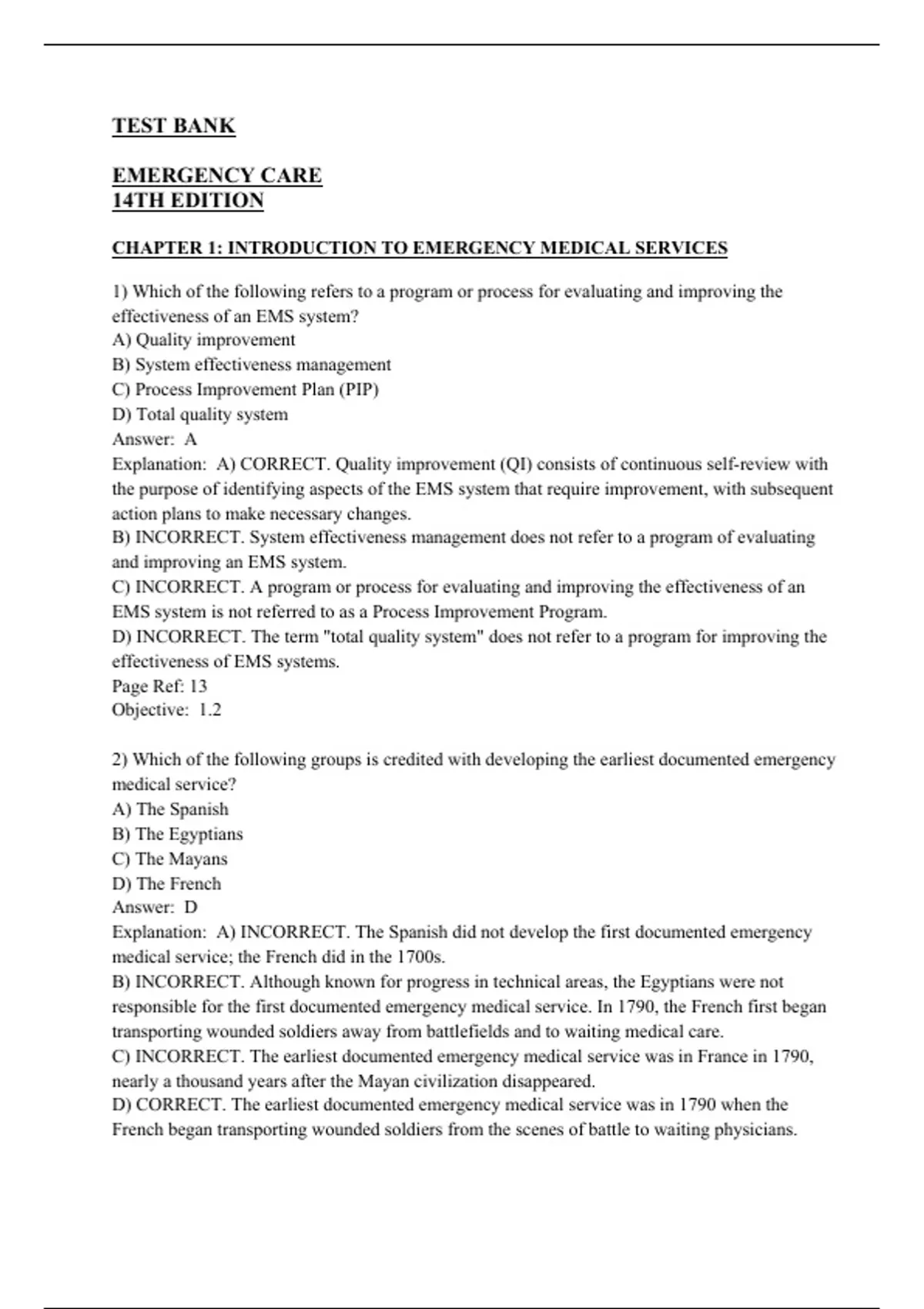 D) INCORRECT. Modern EMS systems were designed to provide more than just trained