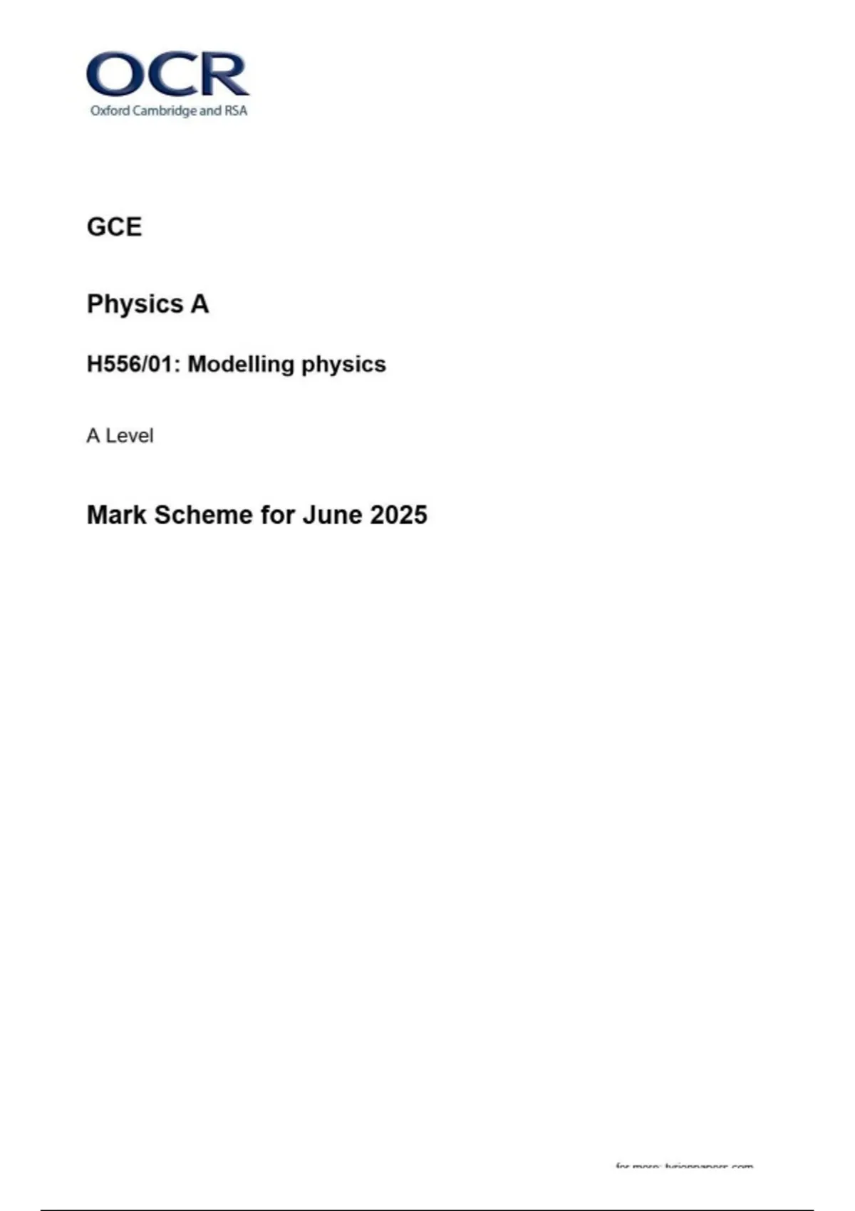 OCR GCE Physics A H556/01: Modelling physics A Level Mark Scheme for June 2025