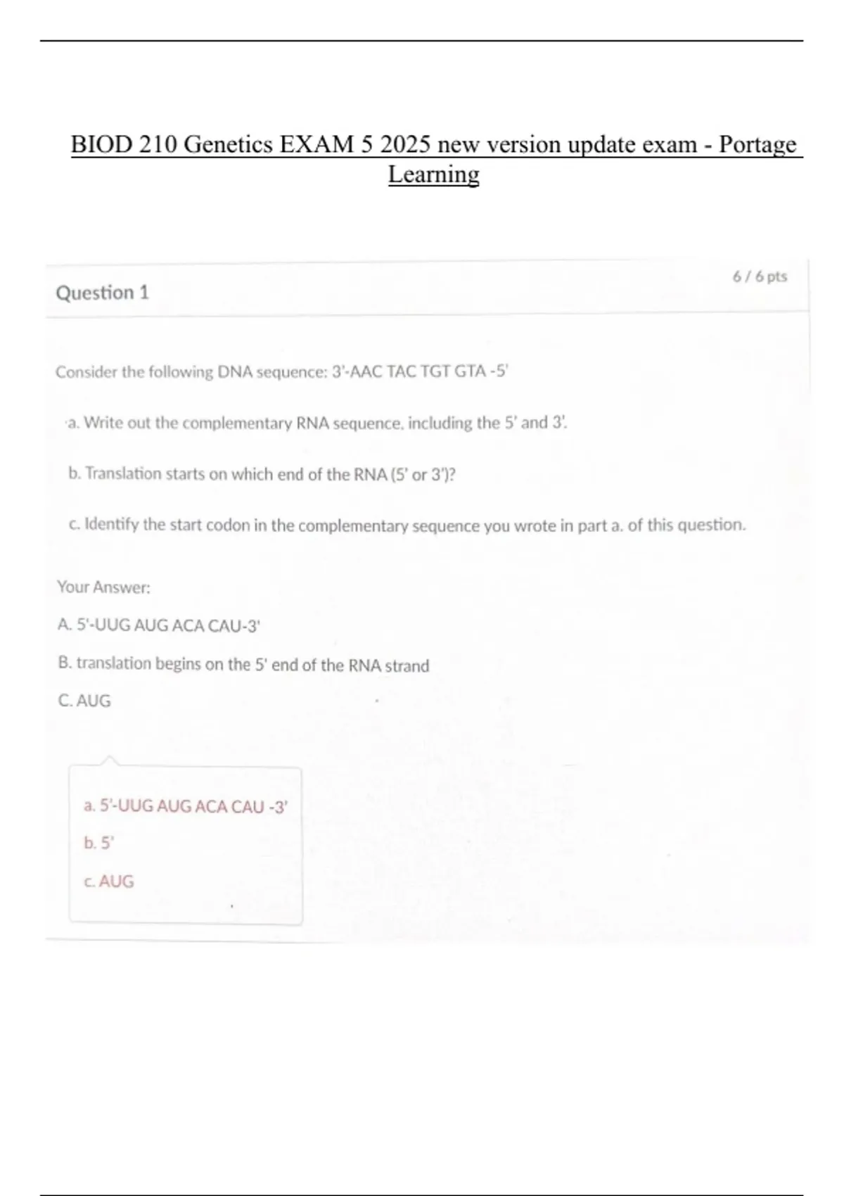 2025 NEW UPDATE VERSIONS EXAMS 1-7 BIOD 210 Genetics Portage Learning