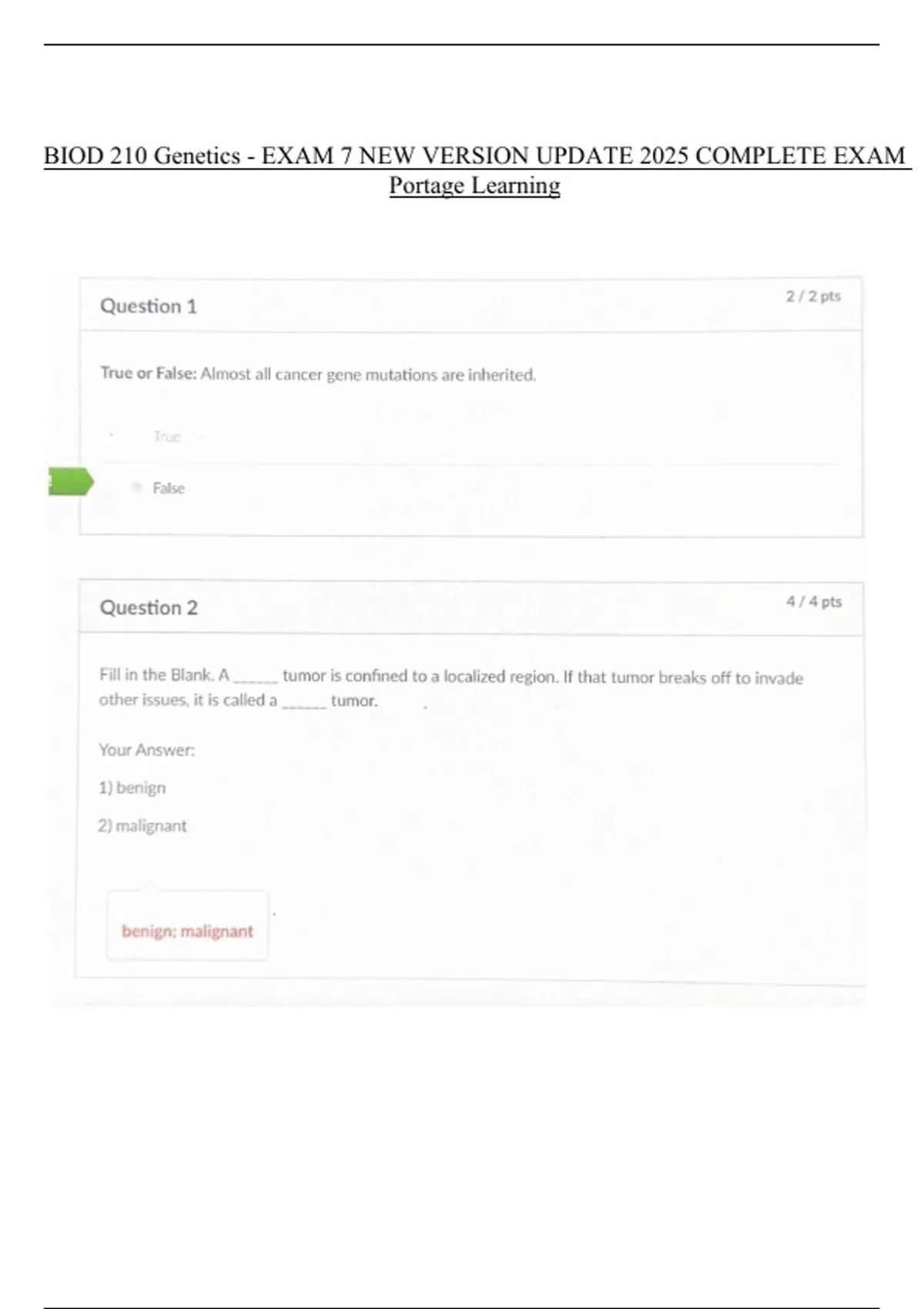 BIOD 210 Genetics - EXAM 7 NEW VERSION UPDATE 2025 COMPLETE EXAM Portage Learning