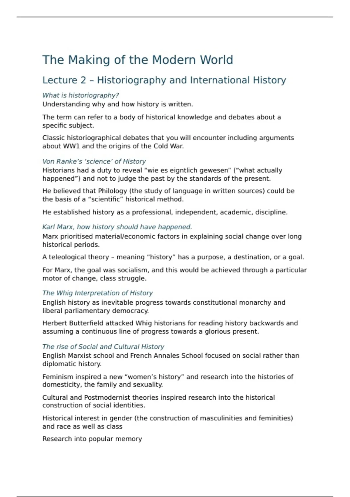 Lecture 2 – Historiography and International History