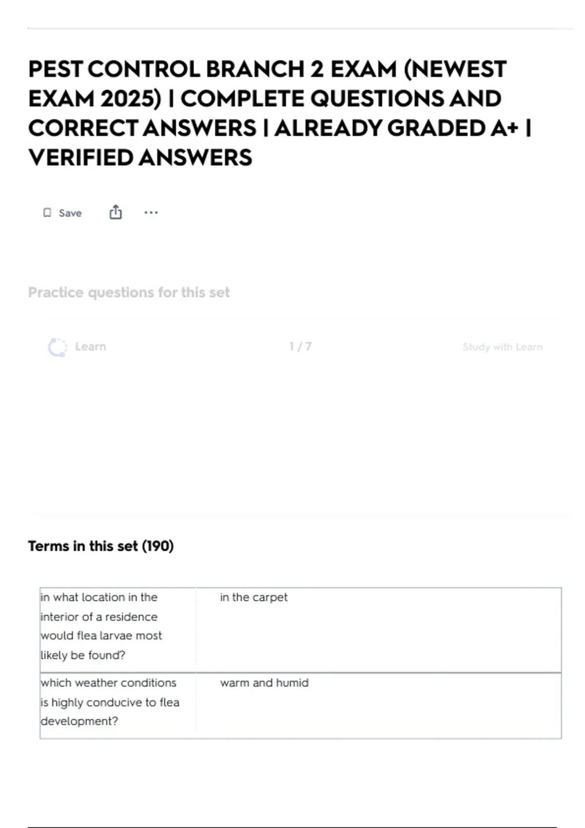 PEST CONTROL BRANCH 2 EXAM (NEWEST