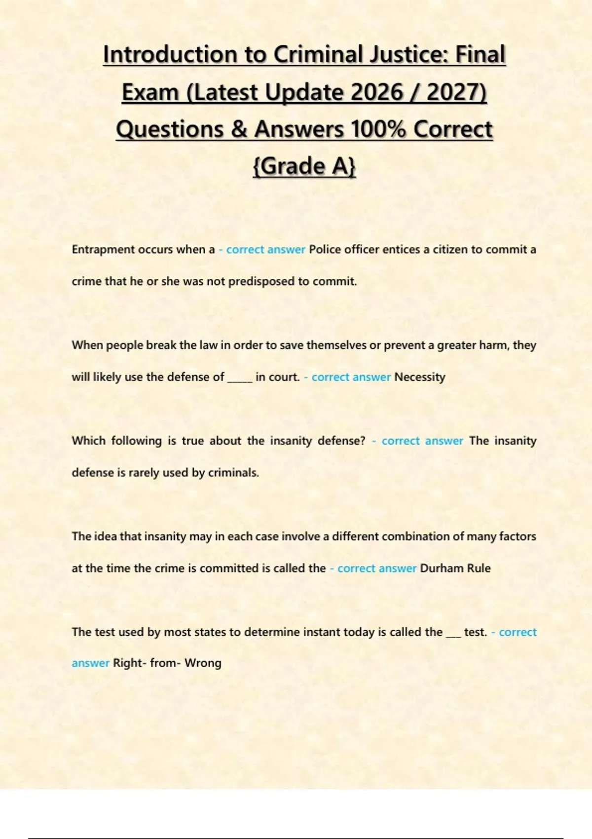 , Introduction to Criminal Justice: Final