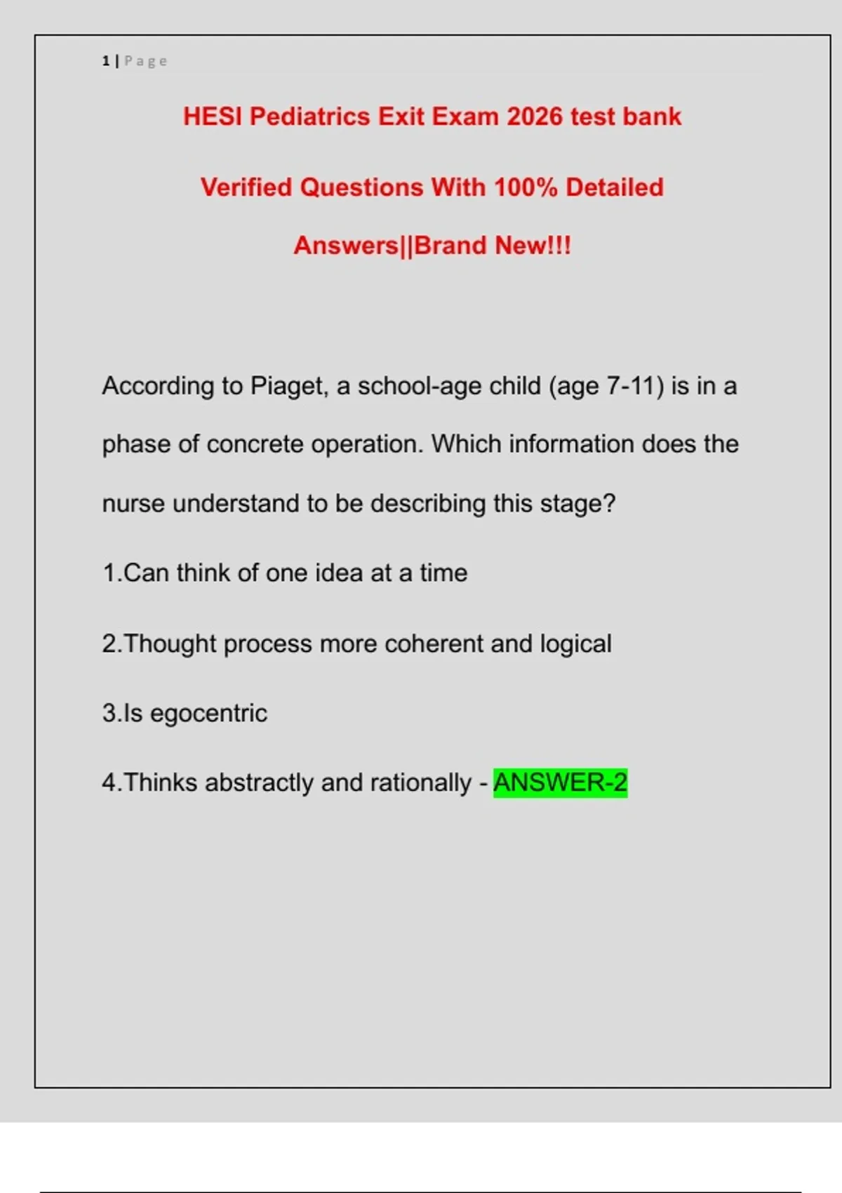 HESI Pediatrics Exit Exam 2026 test bank