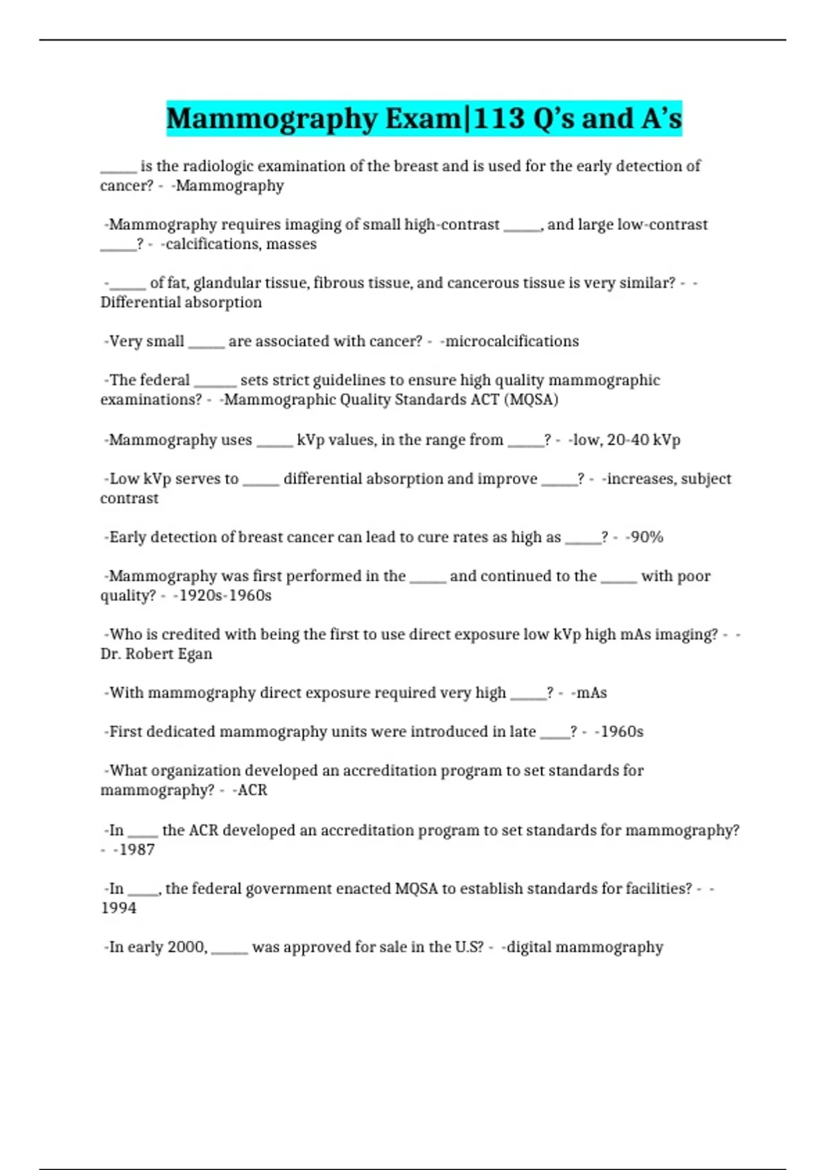 Mammography Exam|113 Q’s and A’s