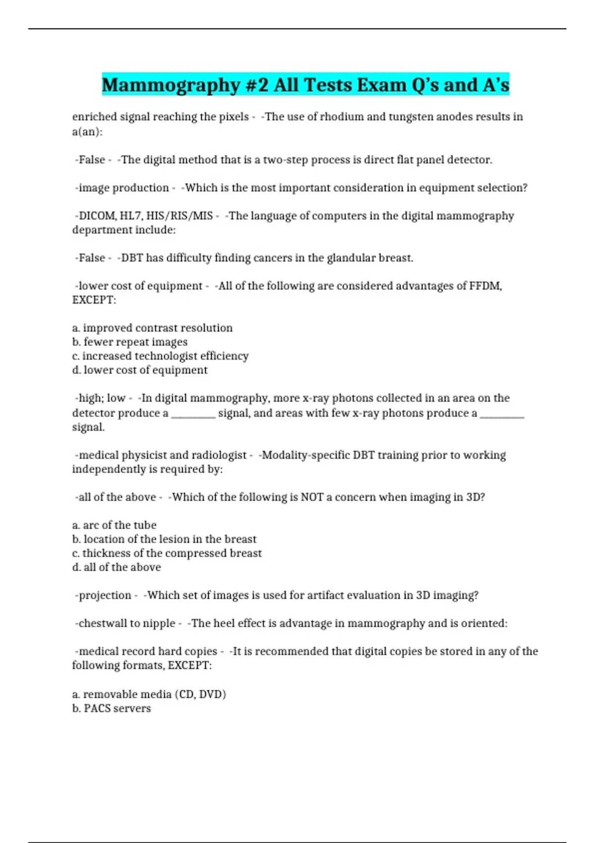Mammography #2 All Tests Exam Q’s and A’s