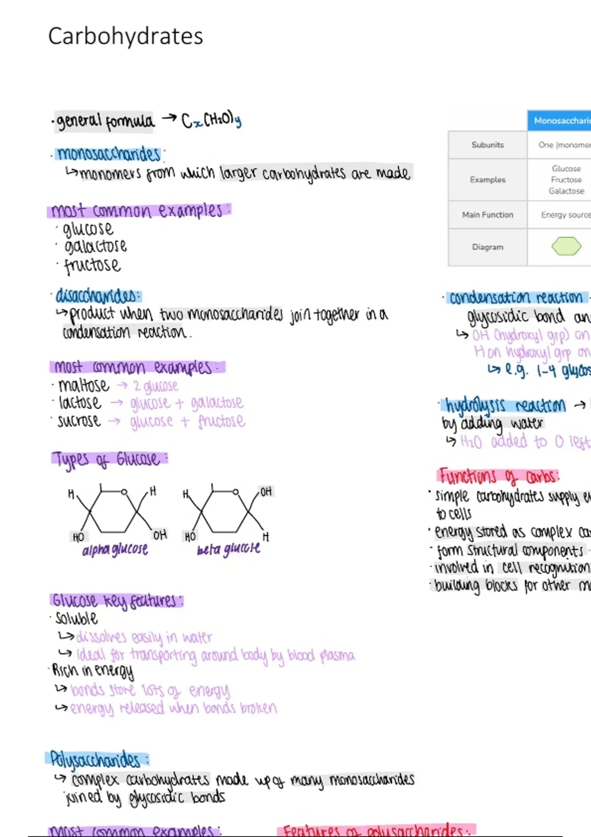 alevel carbohydrates notes