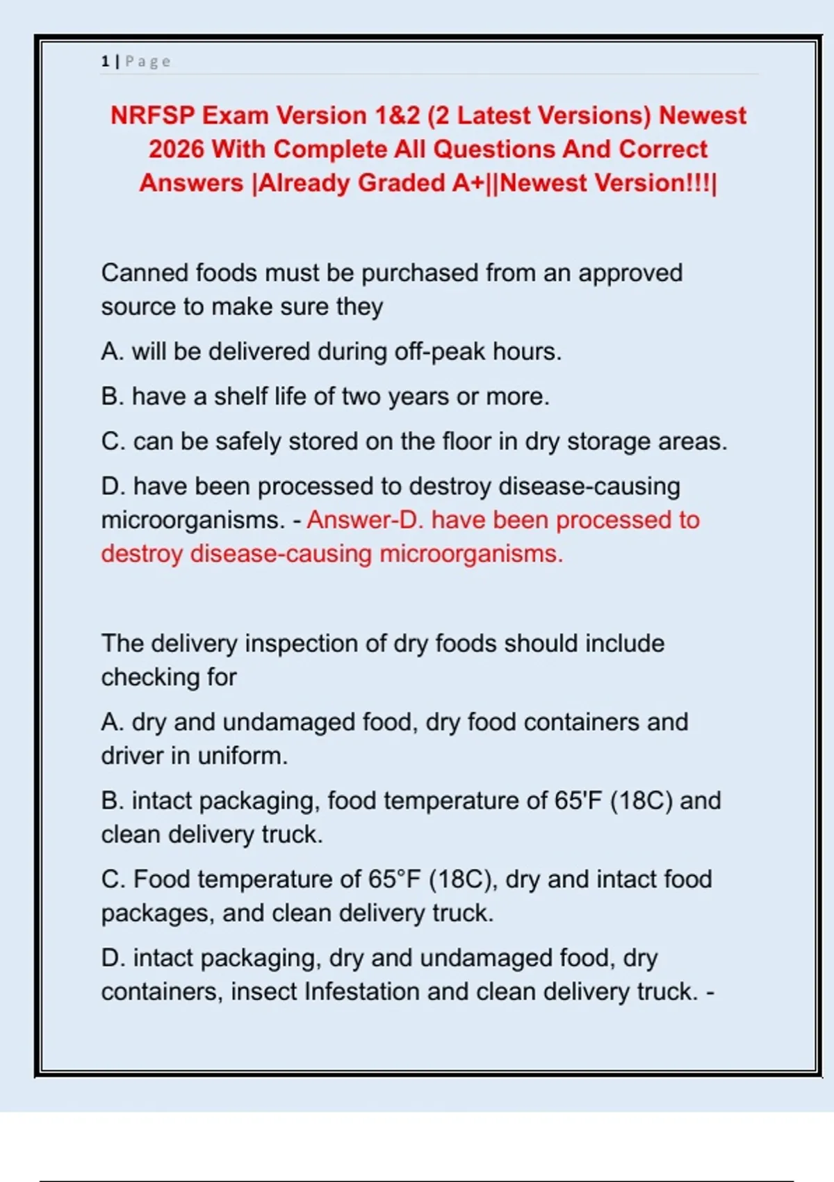 NRFSP Exam Version 1&2 (2 Latest Versions) Newest