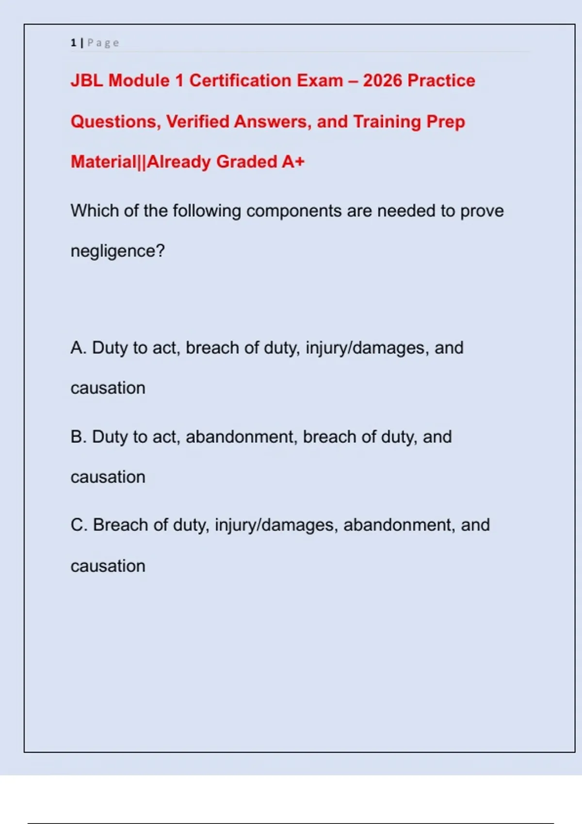 - ANSWER-A. Duty to act, breach of duty, injury/damages,