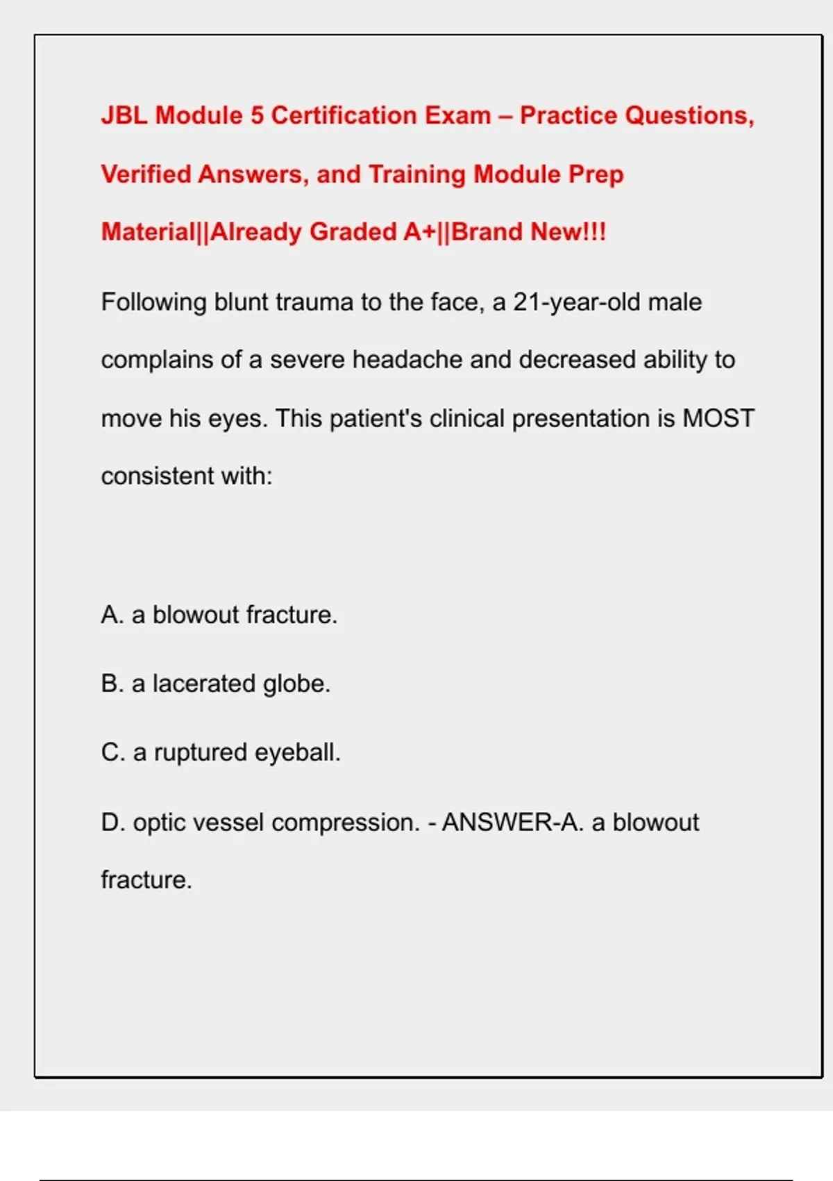 D. optic vessel compression. - ANSWER-A. a blowout