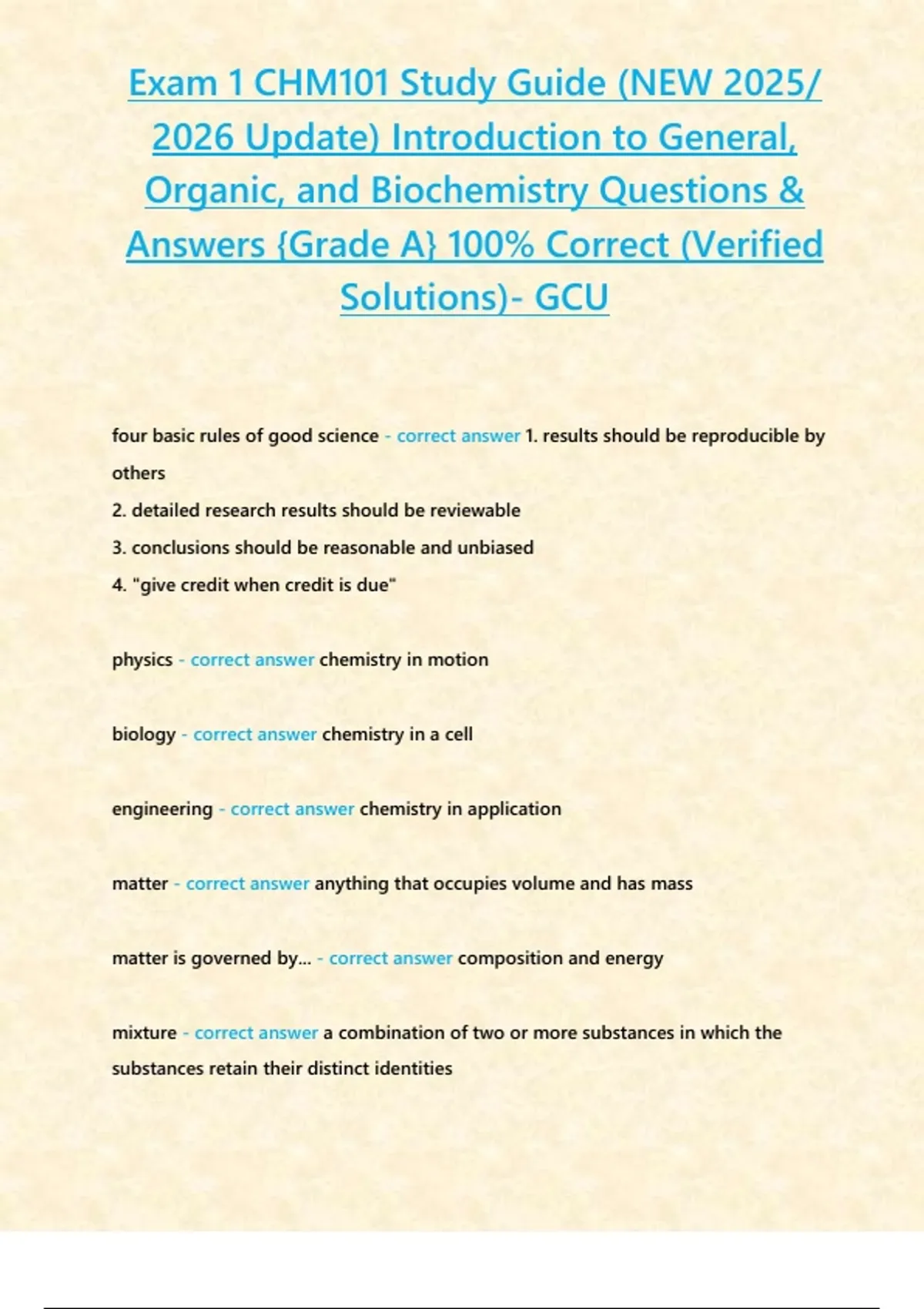 , Exam 1 CHM101 Study Guide (NEW 2025/