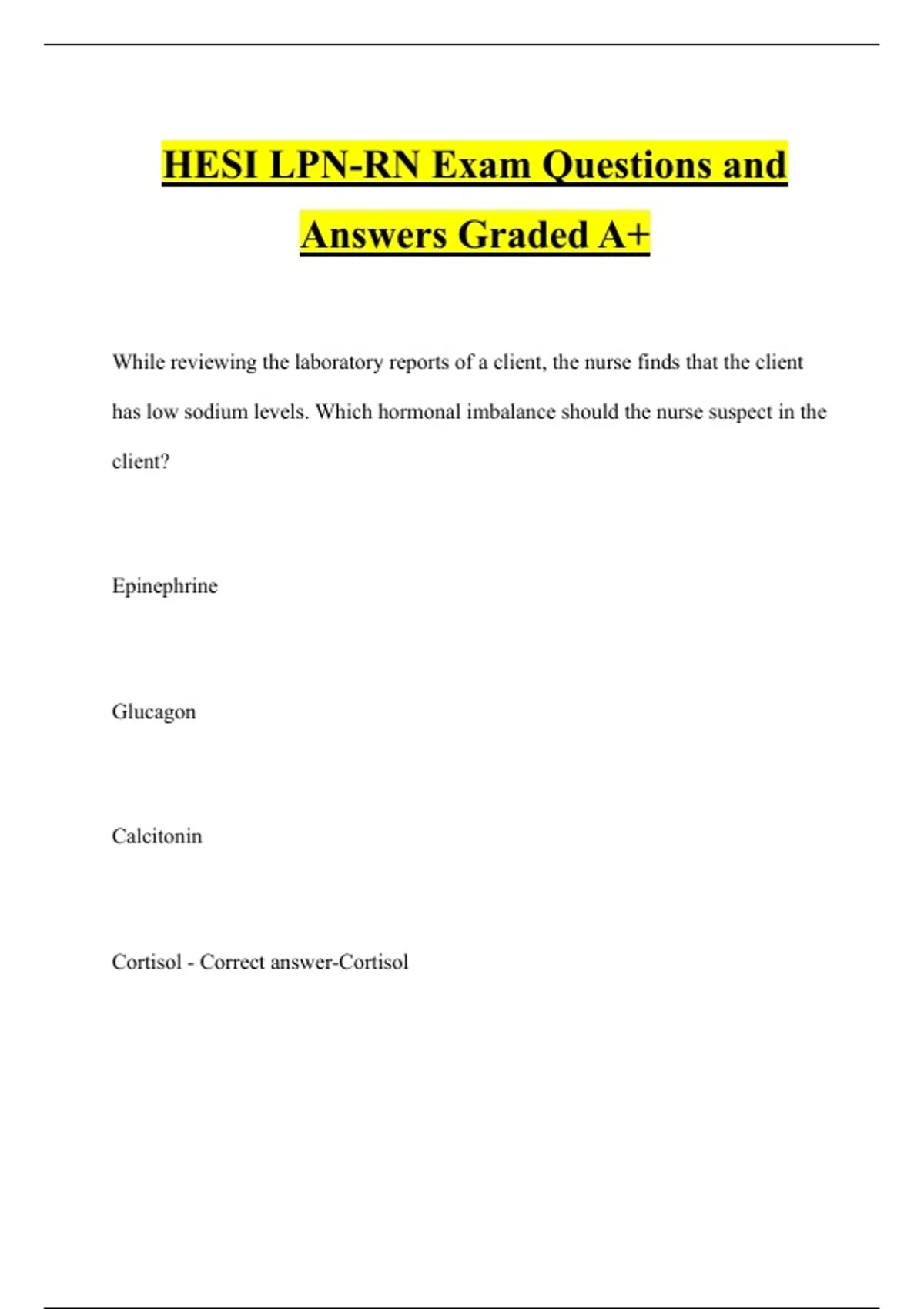 HESI LPN-RN Exam Questions and Answers Graded A+