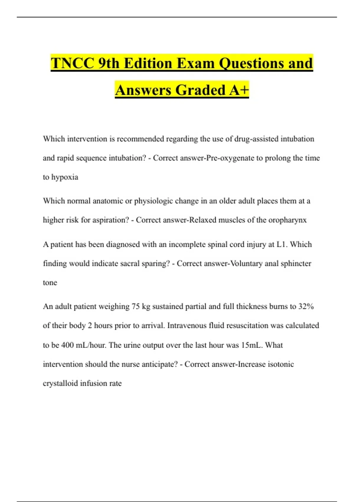 TNCC 9th Edition Exam Questions and Answers Graded A+
