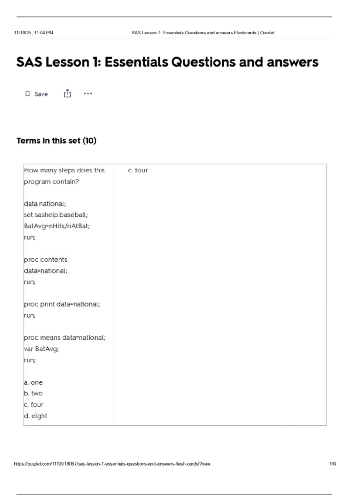 SAS Lesson 1: Essentials Questions and answers