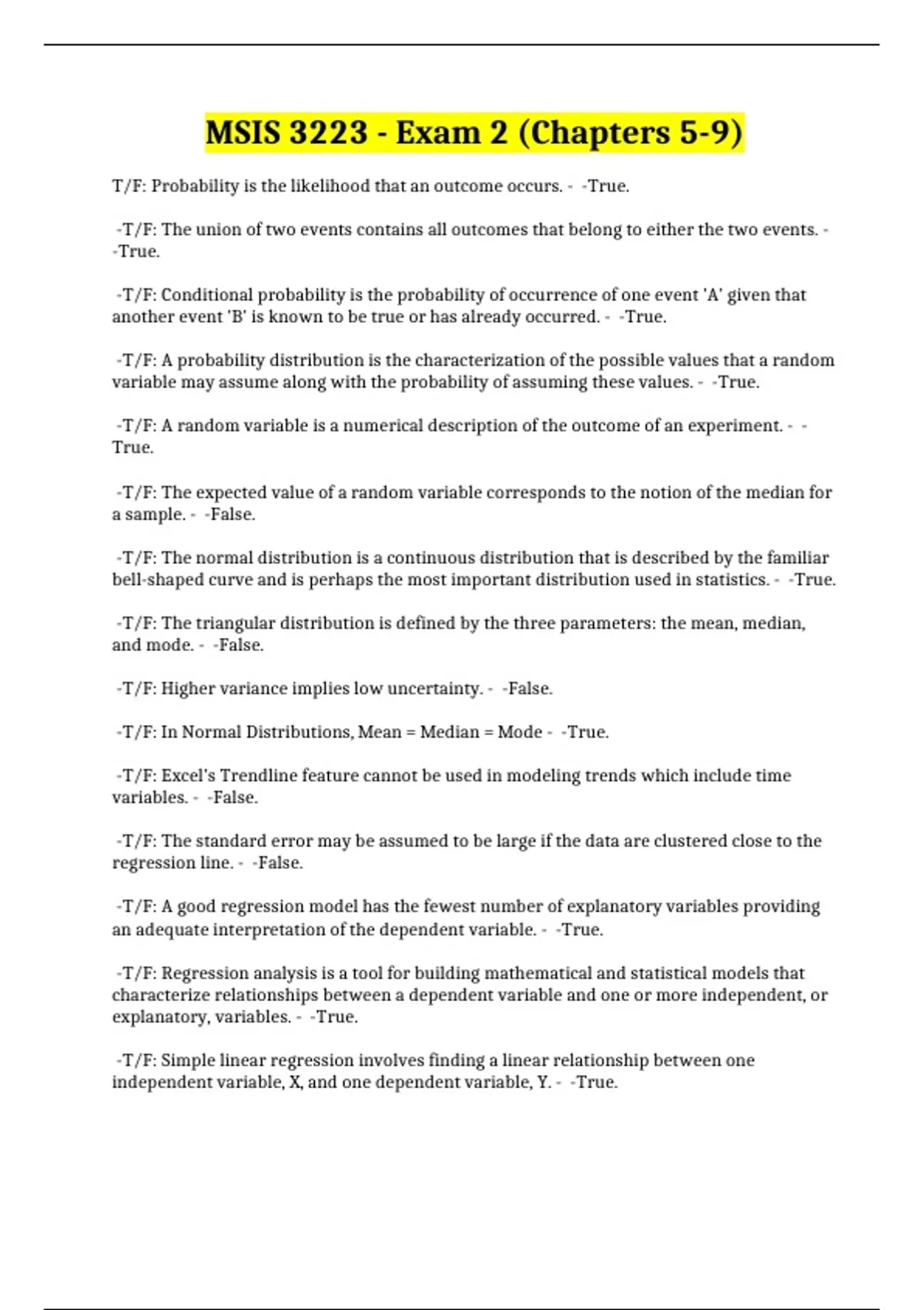 MSIS 3223 - Exam 2 (Chapters 5-9)