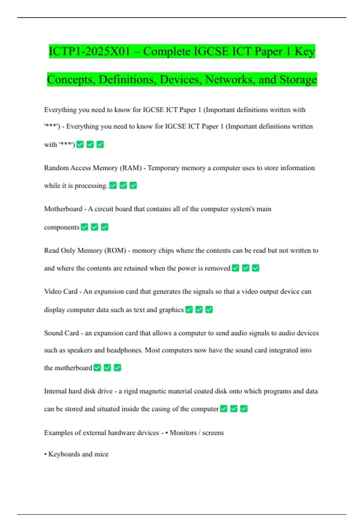 Everything you need to know for IGCSE ICT Paper 1 (Important definitions written with