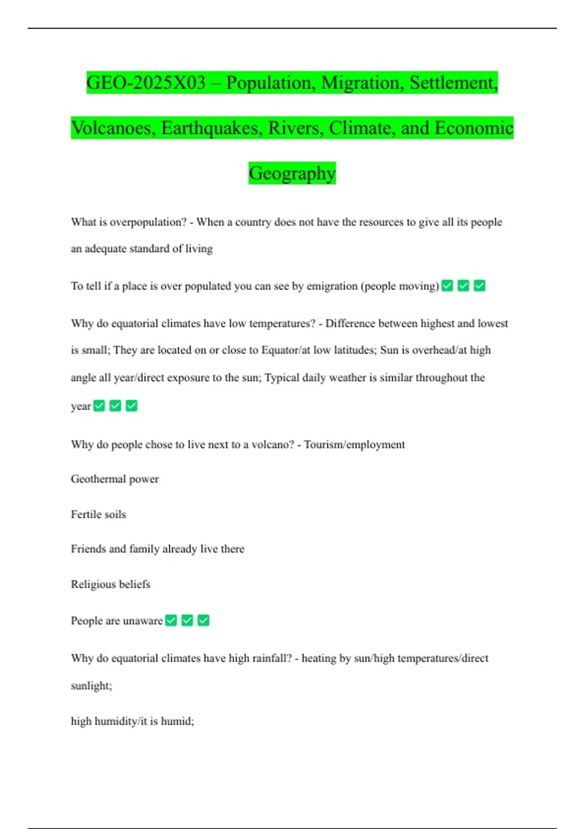 GEO-2025X03 – Population, Migration, Settlement, Volcanoes, Earthquakes, Rivers, Climate, and Economic Geography