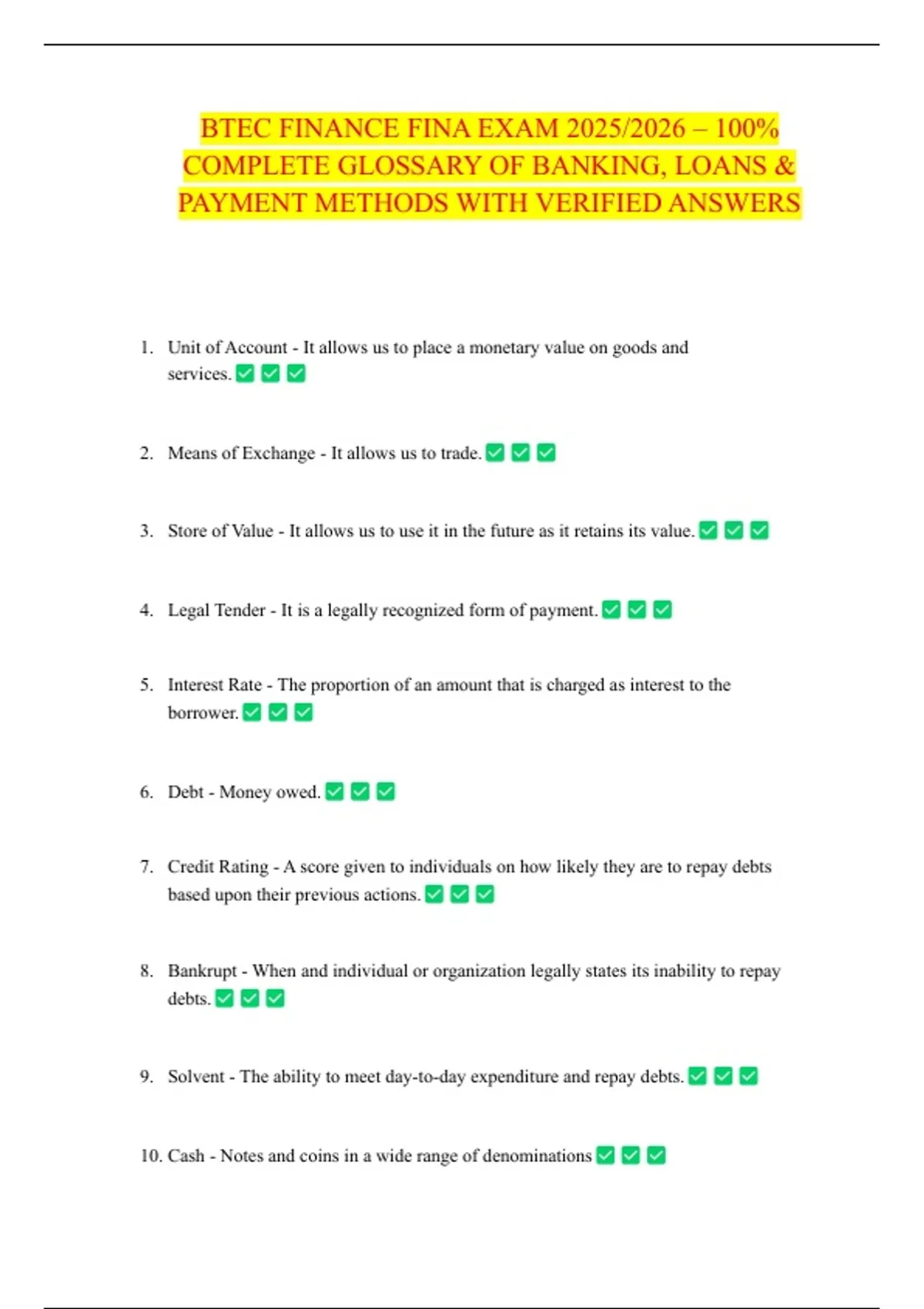 7. Credit Rating - A score given to individuals on how likely they are to repay debts