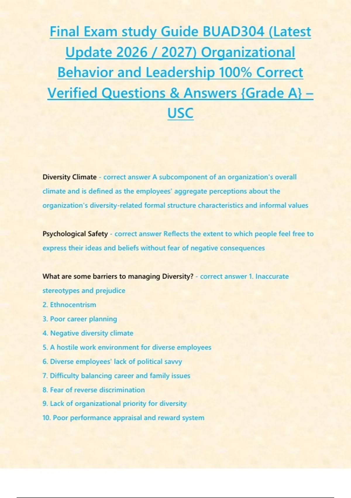 Diversity Climate - correct answer A subcomponent of an organization's overall