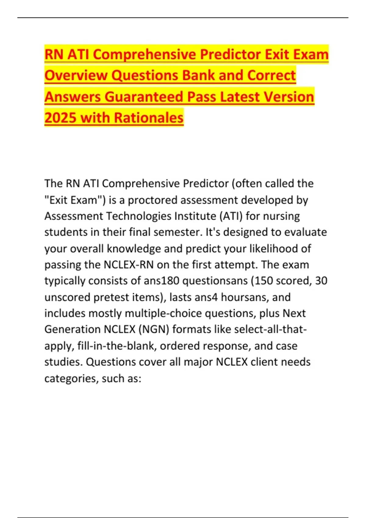 RN ATI Comprehensive Predictor Exit Exam Overview Questions Bank and Correct Answers Guaranteed Pass