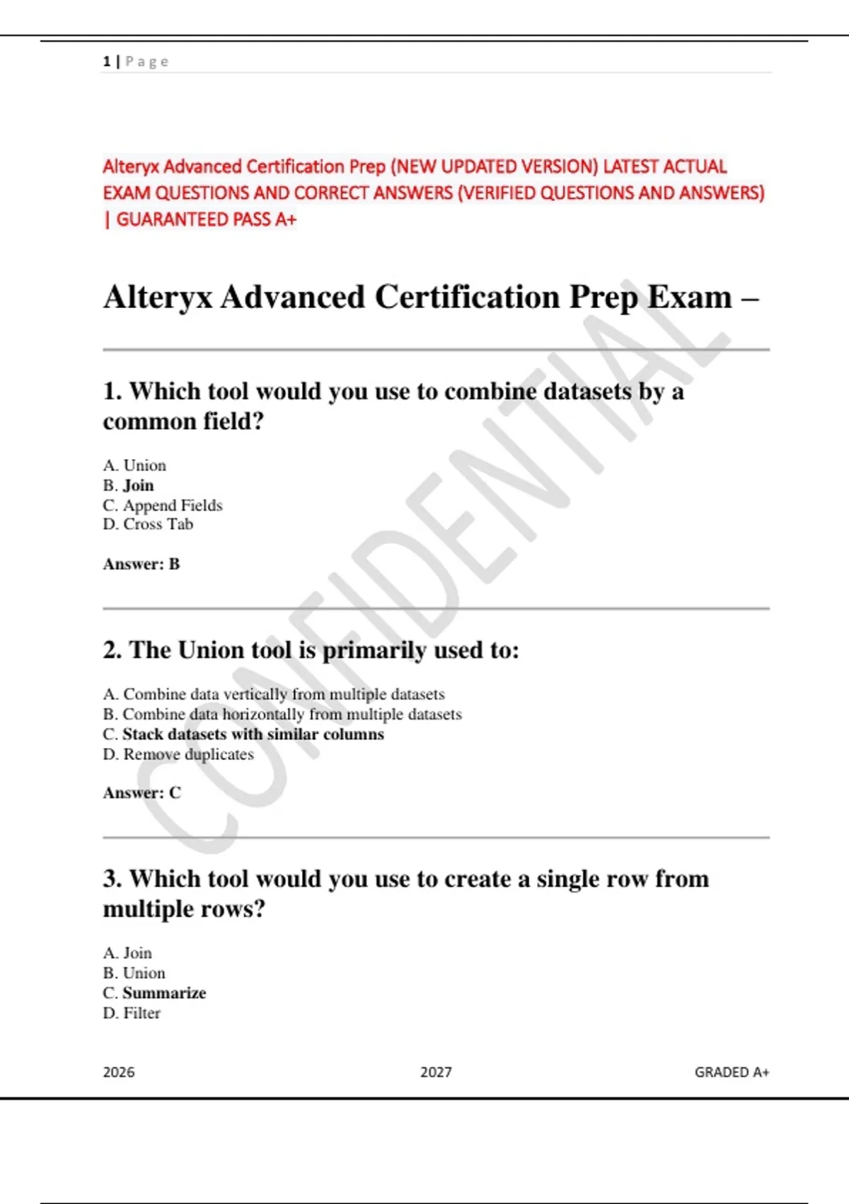 Alteryx Advanced Certification Prep (NEW UPDATED VERSION) LATEST ACTUAL